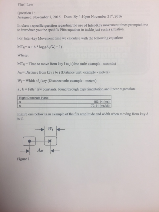 Solved Fitts Law Question 1 Assigned November 7 2016 Chegg Com